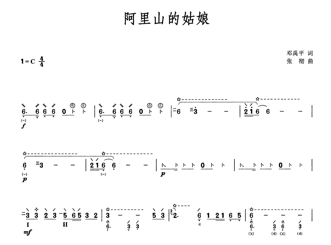 阿里山的姑娘(琵琶谱-C调)