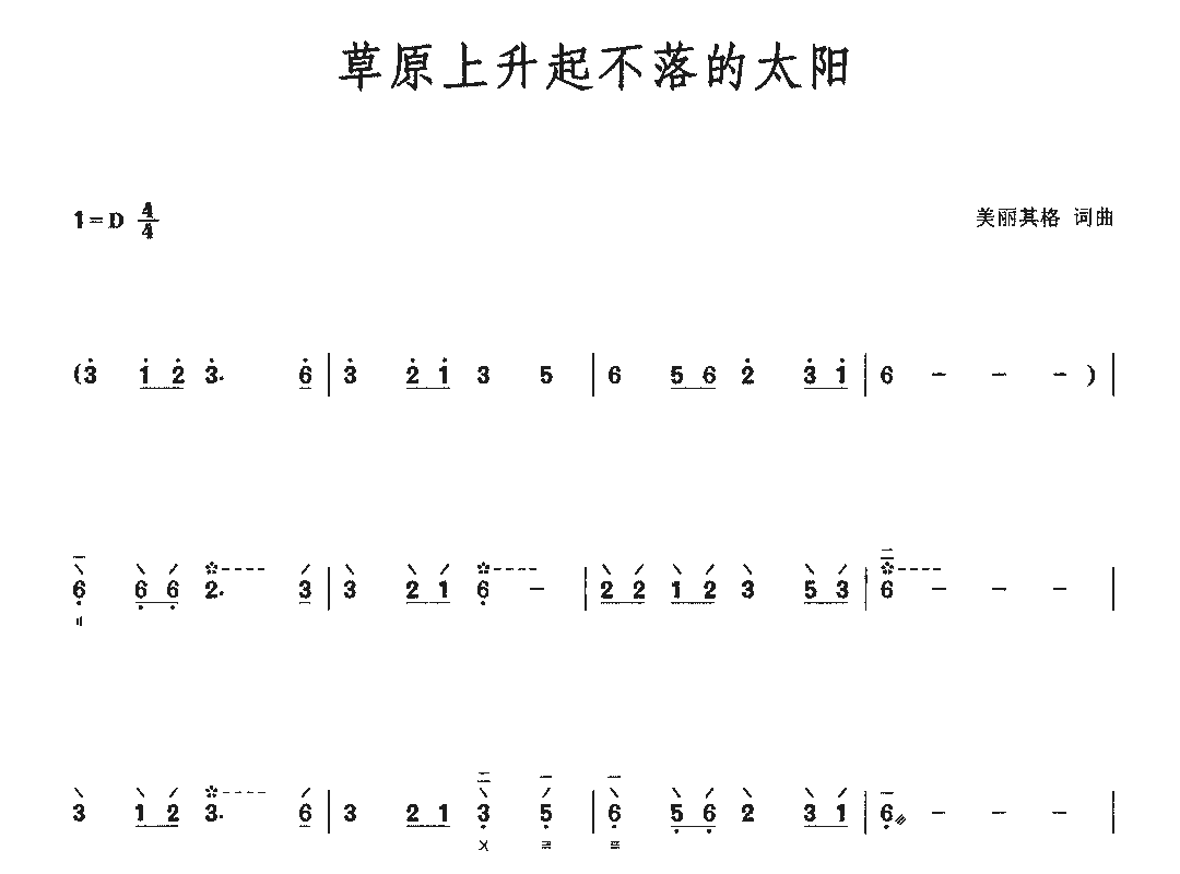 草原上升起不落的太阳(琵琶谱-D调)