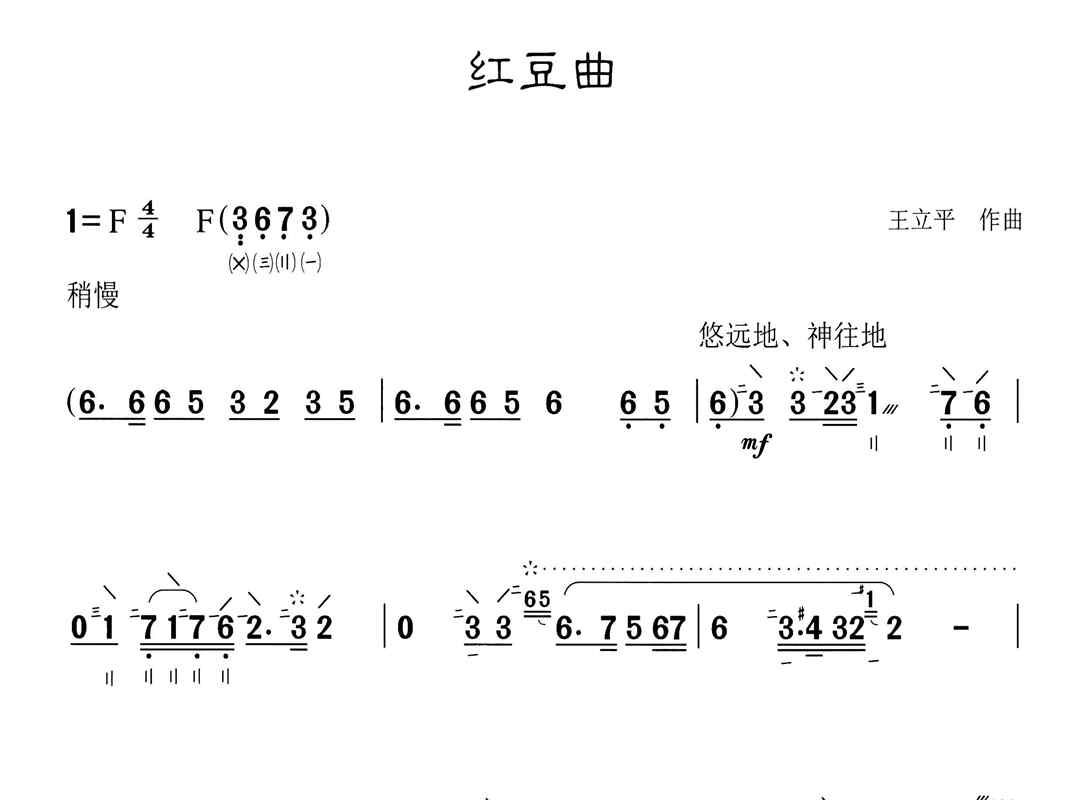 红豆曲(琵琶谱-F调-电视剧《红楼梦》插曲)