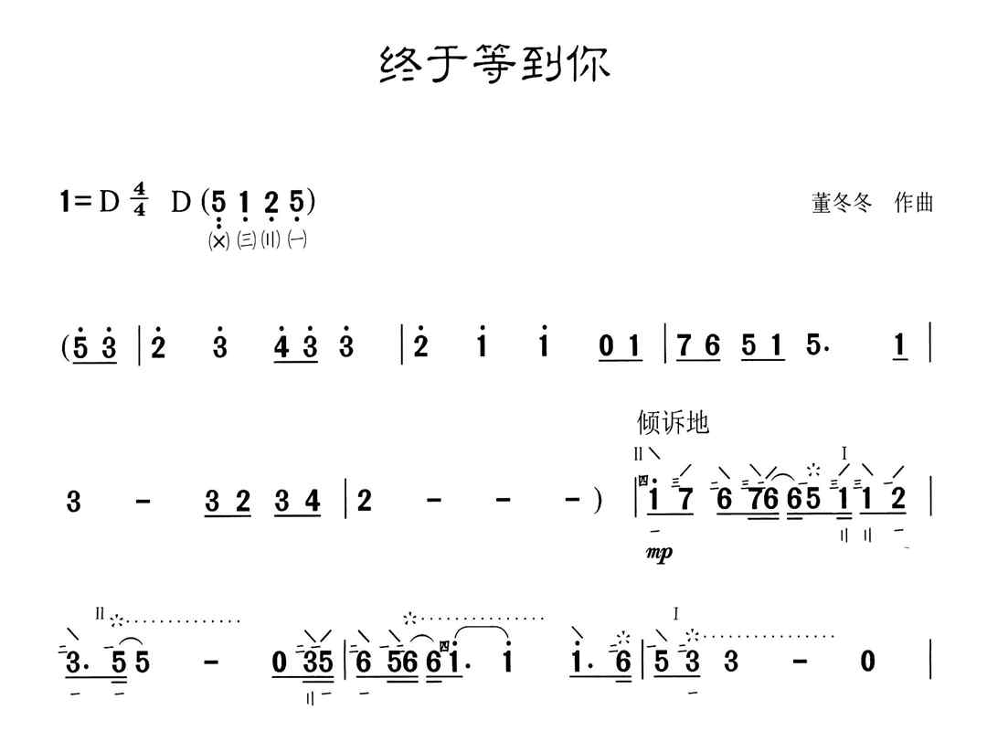 终于等到你(琵琶谱-D调)