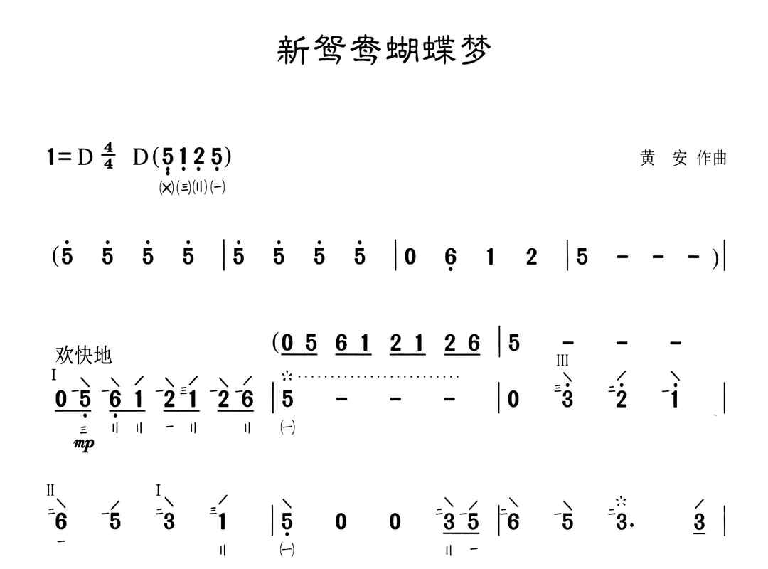 新鸳鸯蝴蝶梦(琵琶谱-D调)